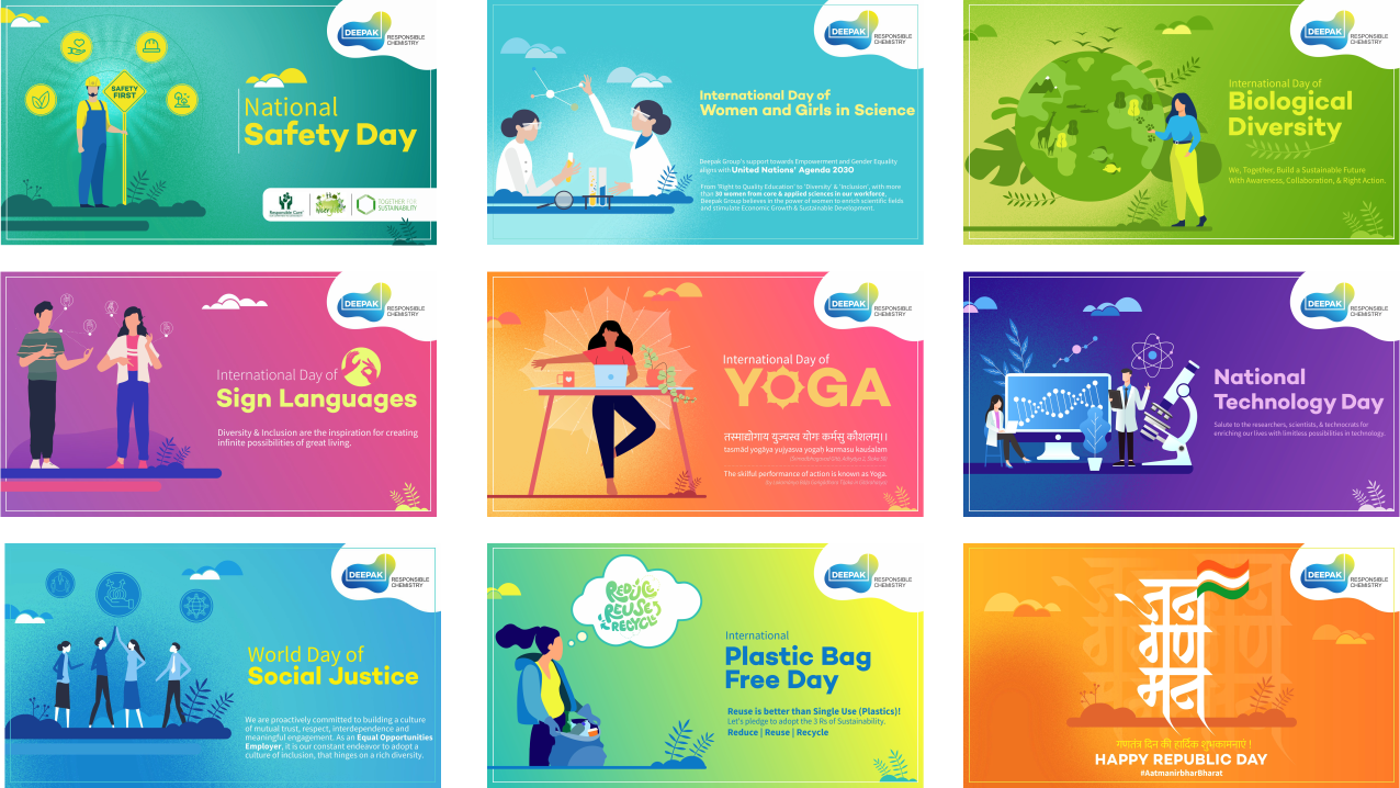 and an engaging visual style were introduced to create more dynamic employee updates, training materials, and event communications. Externally,